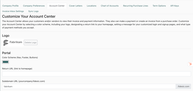 When Fidesic delivers remittance notification to your vendors, it will include instructions on how vendors can create an account at our Vendor Account Center. For this template to send a valid link address, you will need to configure the Account Center with a subdomain, and ideally a logo as well.